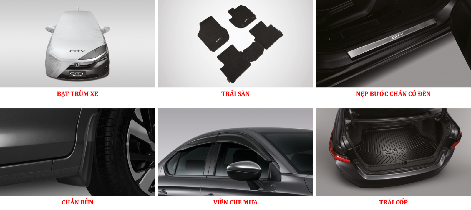 Sau đây, Honda Ôtô Cộng Hòa sẽ tổng hợp các phụ kiện chính hãng Honda giúp Quý khách hàng dễ dàng lựa chọn: