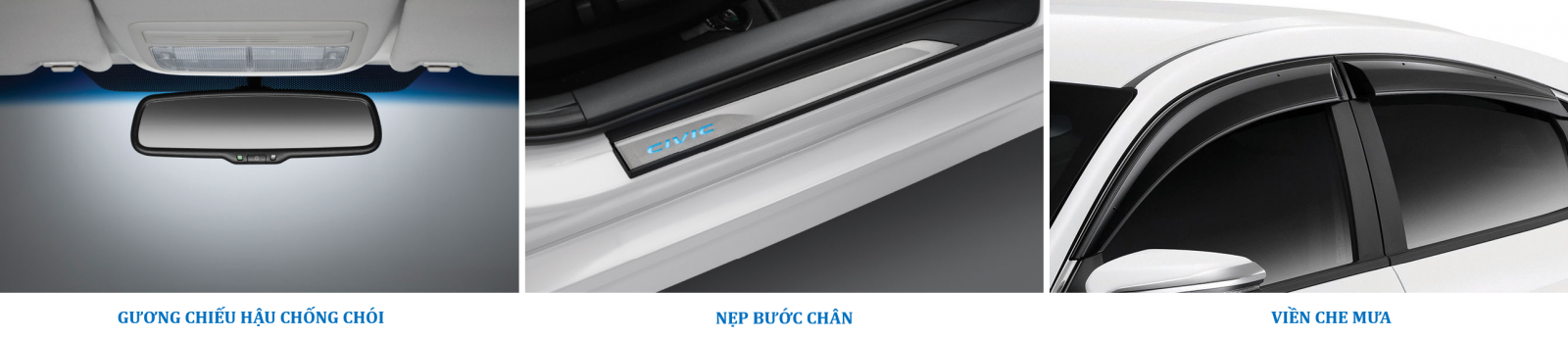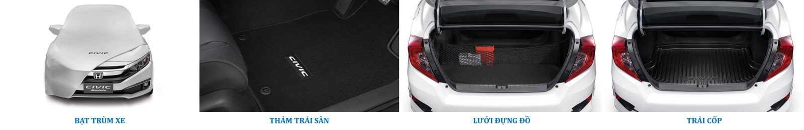 4- Honda CIVIC : Quý khách có thể lựa chọn những phụ kiện trang trí giúp cho chiếc Civic sở hữu phong cách thể thao nổi bật hay sang trọng cá tính hơn và trang bị thêm những chi tiết giúp cho mọi hành trình trở nên tiện lợi và hữu dụng.