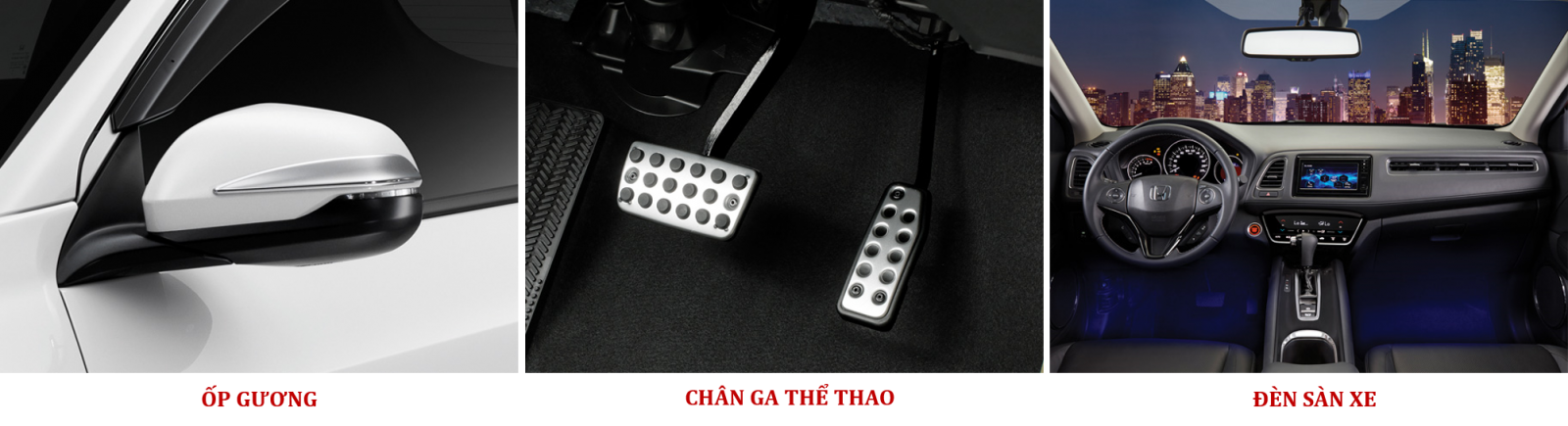 >>> Phụ kiện chính hãng Honda được chia làm 3 nhóm với trên 30 phụ kiện các loại bao gồm: